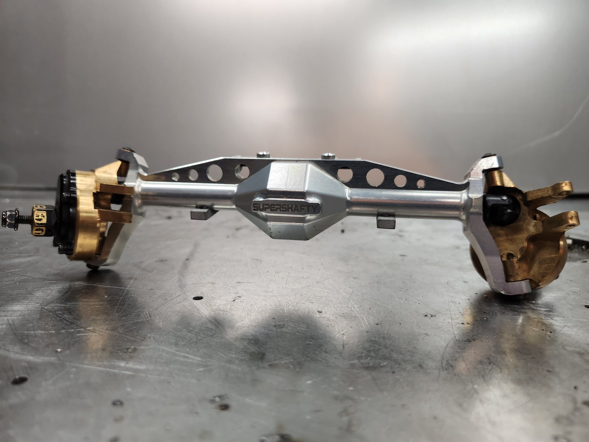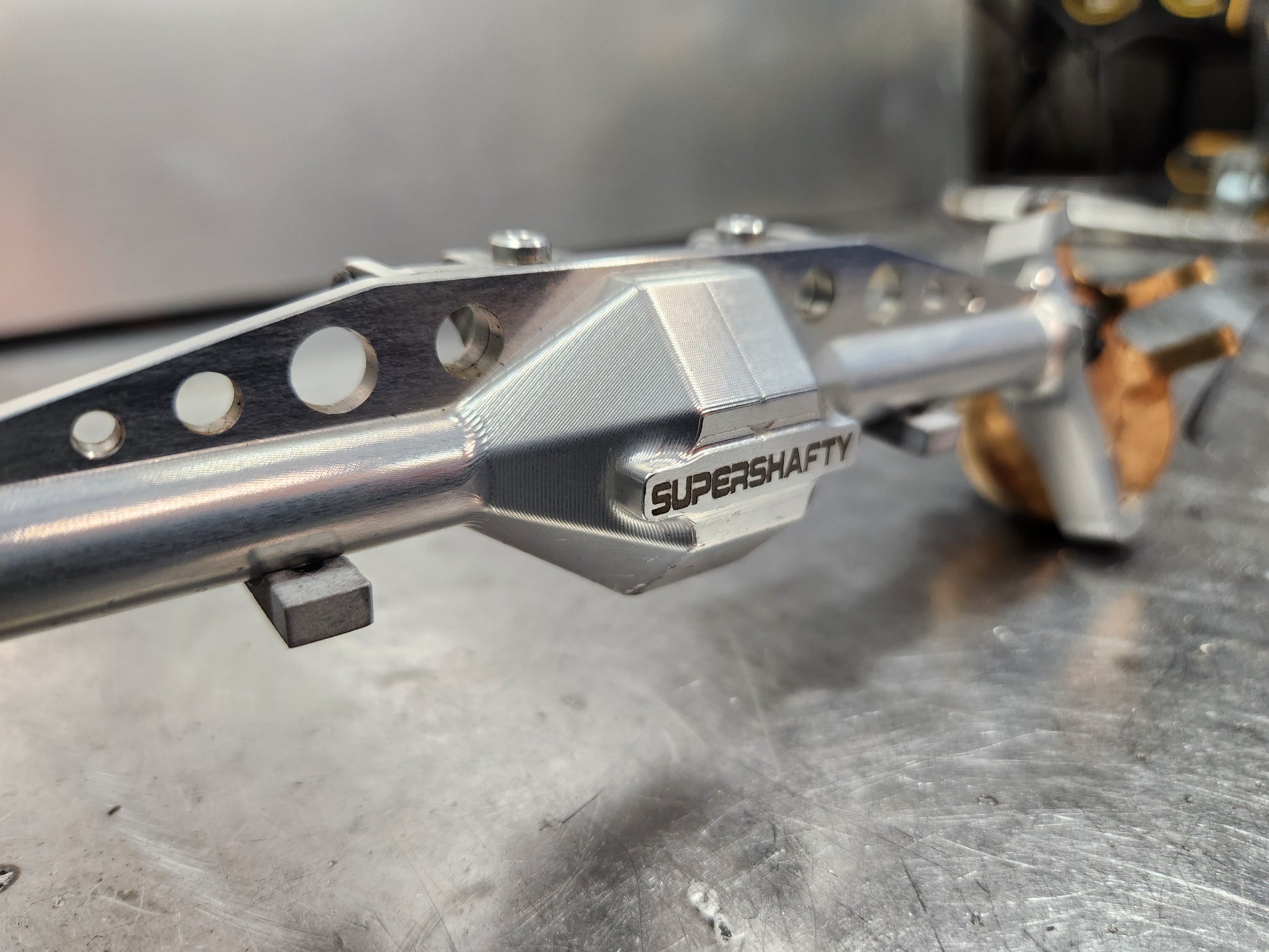 Made of Aluminum, this Leaf Under Mount is for the SuperShafty CP44 Portal Axle. It is a Standard Width (80mm) Leaf Chassis design, and is compatible with TF2, Bouncing Betty V1-4, TFC 410 Leaf Conversion, etc. This is a CENTERED Axle Placement design.