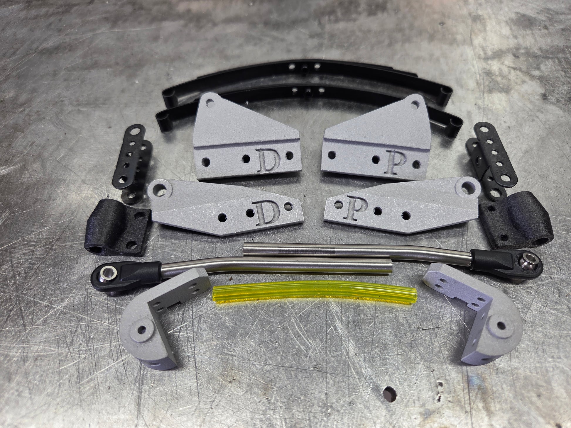 This is a complete conversion kit, and comes with the Chassis Side Leaf Hangers, Axle Side Leaf Mounts, Swing Shackles, Anti-Wrap Kit, and Bushing Tube.