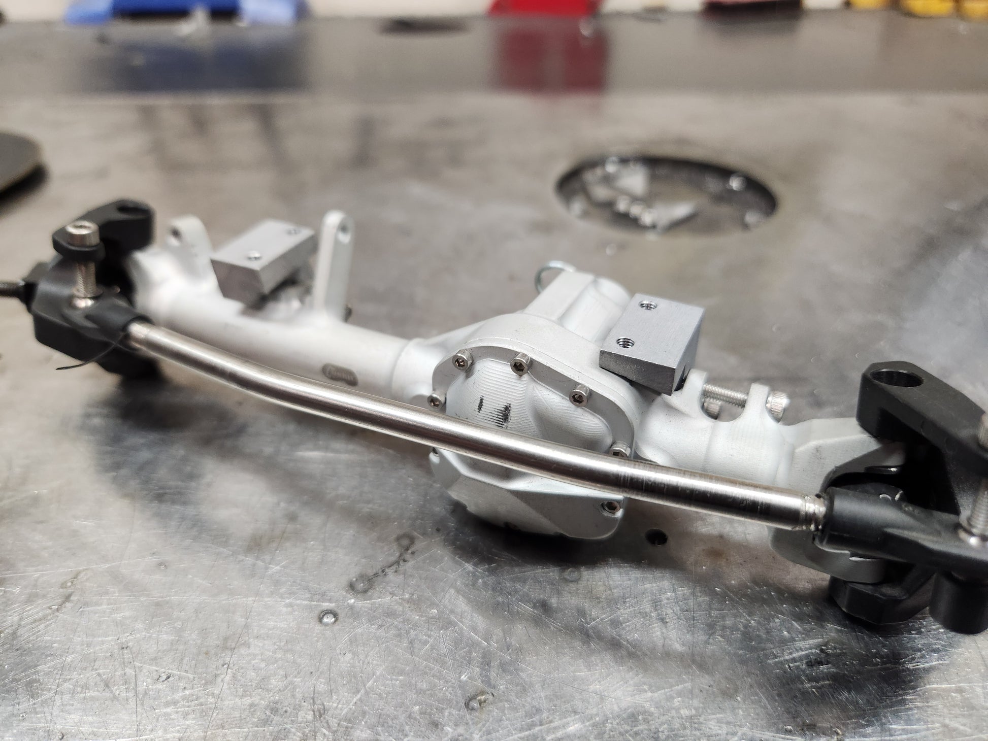 Made from Aluminum, this Leaf Mount was designed for the Vanquish D44 Front Axle, when used with a Narrow Leaf Chassis such as the Northwest Scaler Designs Bouncing Betty V5! They are a PUSH style Mount, that Pushes the Front Axle 7mm Forward from center of leaf bolt holes.